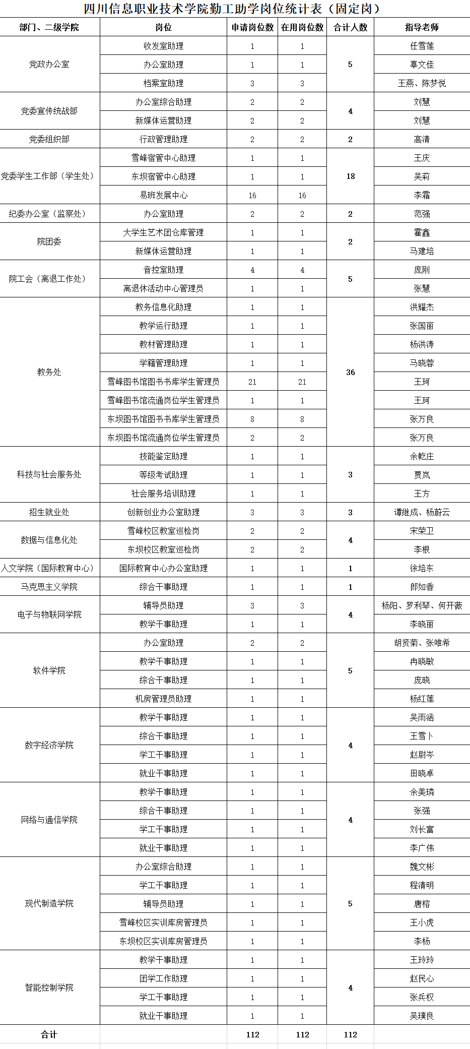 附件:四川信息职业技术学院勤工助学岗位统计表