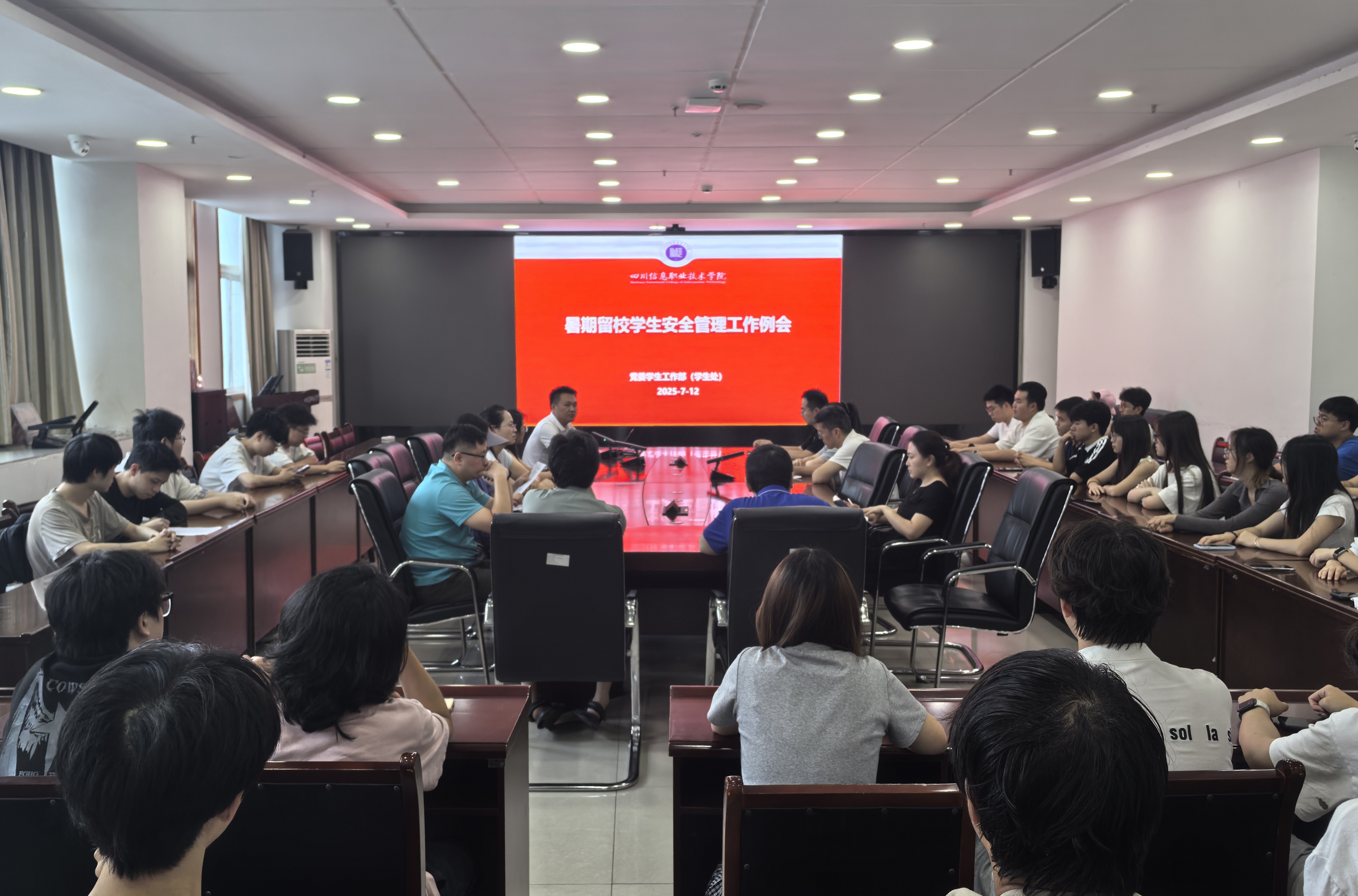 7月12日下午,党委学生工作部在0903会议室组织召开留校学生安全管理工作例会。全体留校学生、相关辅导员和指导教师参加会议。会议由党委学生工作部部长张健华主持。