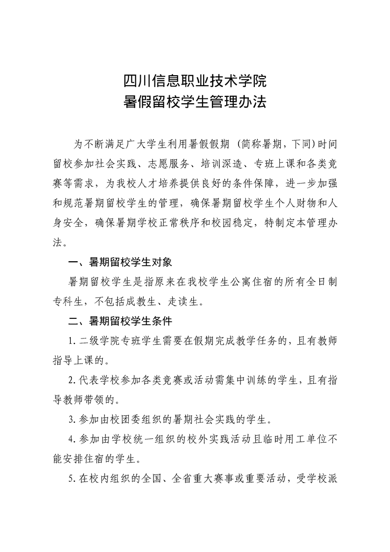 暑假留校学生管理办法