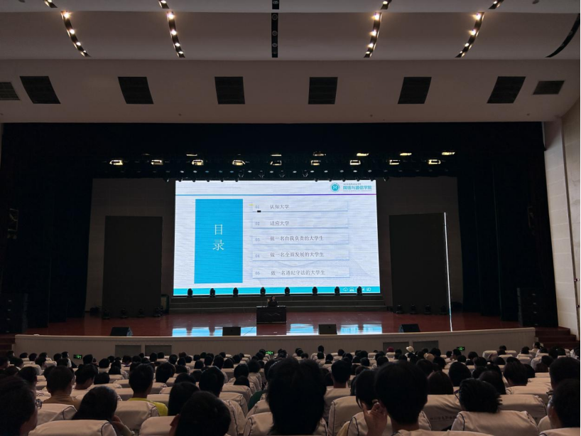 秋风送爽、丹桂飘香的季节,为了帮助学校新生尽快适应新的校园生活,以更好的状态、更积极的心态启程逐梦,9月22日上午,“新学校,新希望,新起航——2023级新生心理适应性教育”讲座在学术交流中心演艺厅开讲,网络与通信学院心理干事古佳立老师主讲,学院2023级新生共计521人聆听了本次讲座,相关辅导员到场,本次讲座由学院胡文超老师主持。